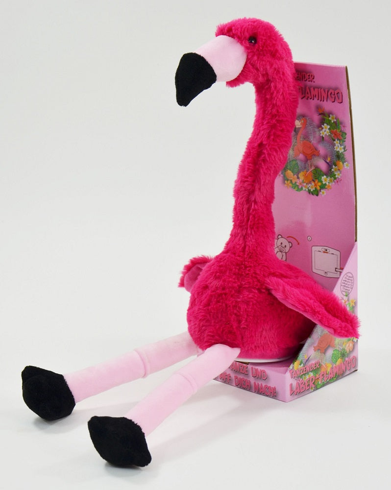 Sjovt Taledyr i form af en flamingo. Sig noget til Taledyret, så gentager det de ord, du sagde (op til 6 sekunder) med en sjov stemme, mens det bevæger sig. 3 x AAA batterier medfølger. Taledyrets mål: ca 12x18x19 cm.