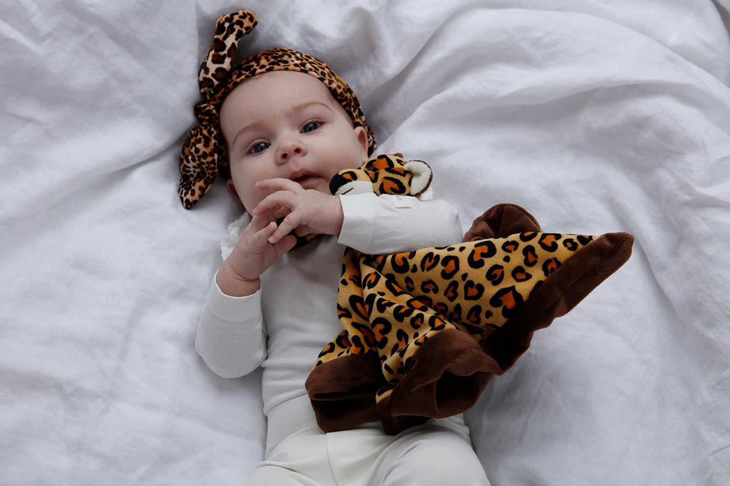 Denne søde nusseklud ligner en leopard og er dejlig blød. Den har et sødt udtryk med de små ører og leopard pletterne.