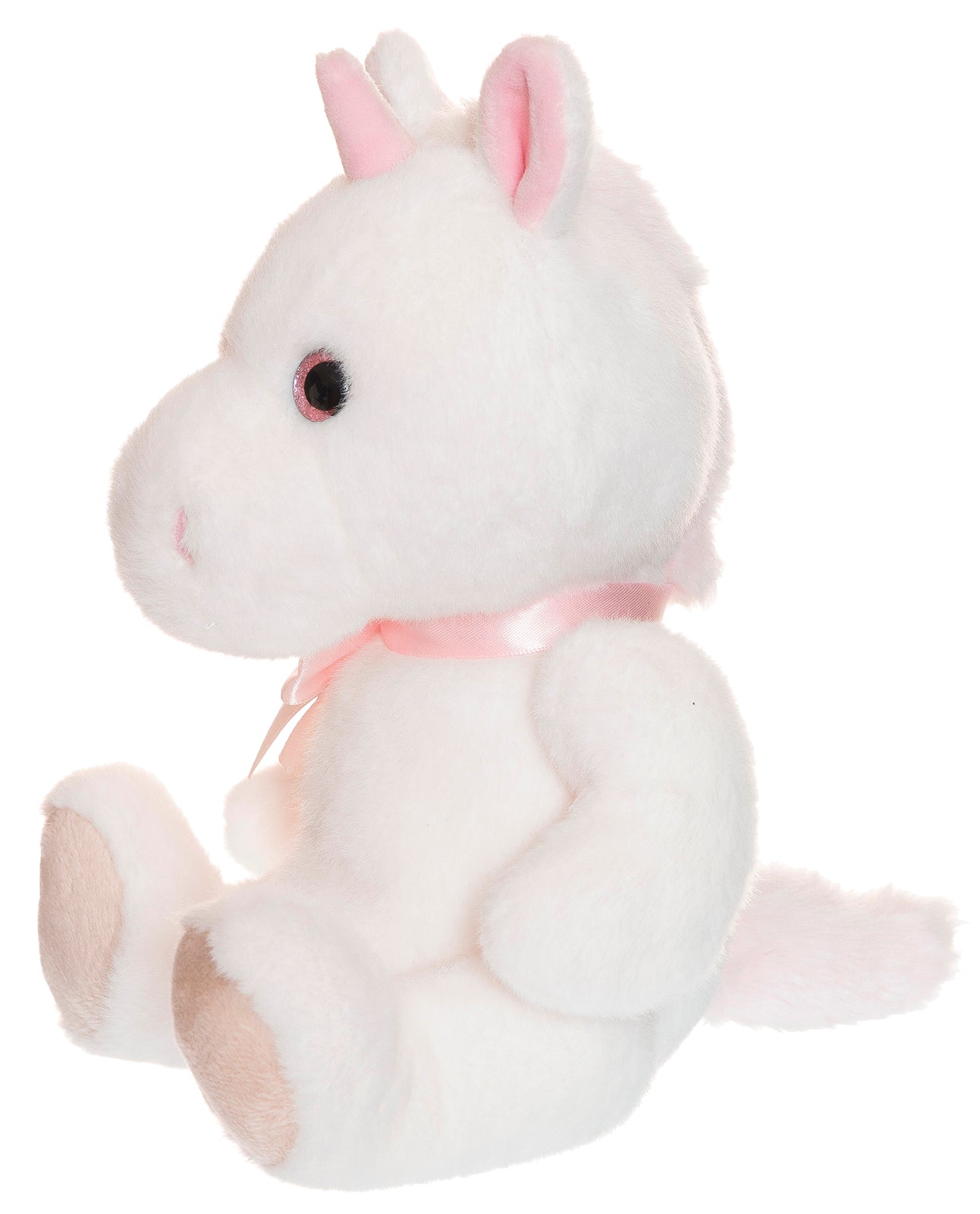 Træd ind i en magisk verden med Elsie en yndig hvid enhjørning, der bærer en smuk lyserød silkesløjfe om halsen, har venlige glitrende øjne og lodne, bløde ører.