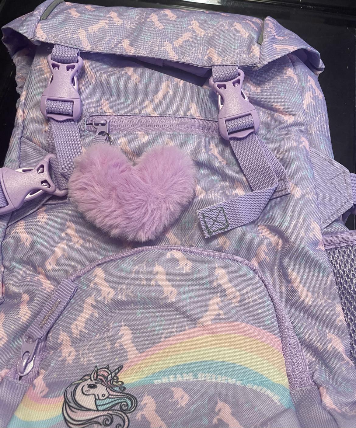 Denne super fine Tinka enhjørning skoletaske 22 L, har masser af rum, gode skulderstropper og rem til at spænde om livet, så belastningen ikke kun er i skulderne, men hele ryggen. Der er også beskyttelse af tasken i regnvejr i lommen øverst på tasken. Ligeledes medfølger der et fint plys hjerte, som taskevedhæng. Så elsker dit barn enhjørninger, så ville denne skoletaske vække begejstring.