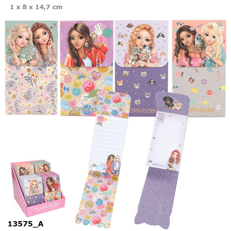 Søde, små notesblokke fra TOPModel med praktiske magnetlukning, så de er smarte at have med i tasken til noter, huskelister m.m. Der er 60 ark linjeret notespapir pr. blok + omslag med søde motiver. Der er fire forskellige designvarianter at vælge imellem.