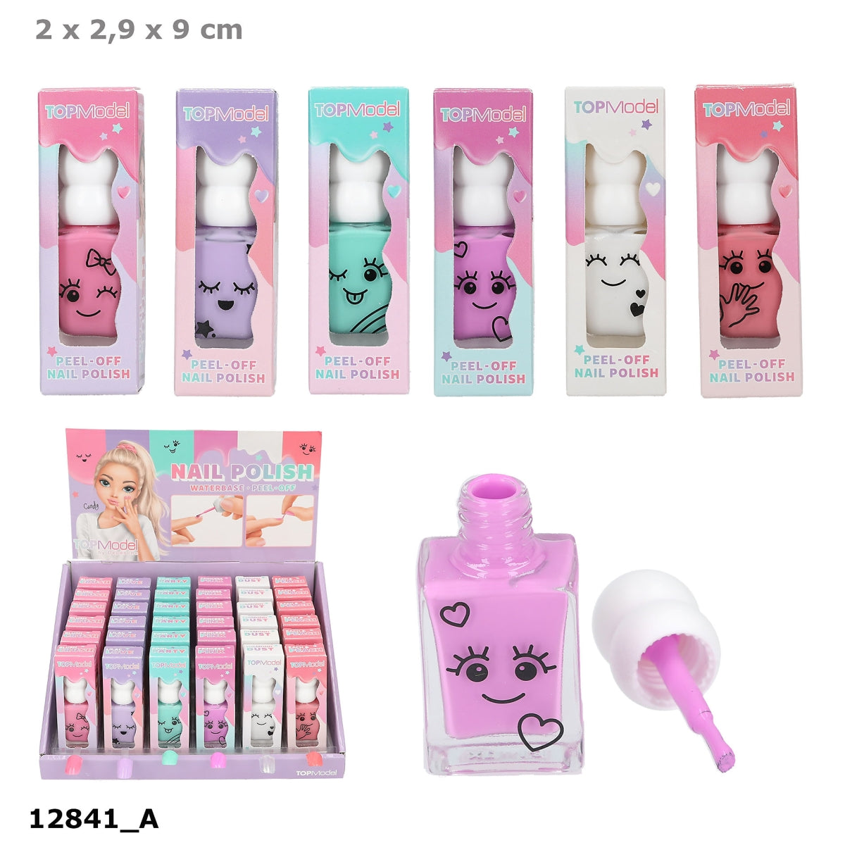 Det vandbaserede TOPModel neglelak fra BEAUTY and Me er let at påføre og fjerne, du kan nemt trække det af når du vil, hvilket gør det nemt at skifte farve så ens negle kan matche ens forskellige outfits. Fås i abrikos, pink, lilla, mintgrøn, fuchsia og transparent glitter. Med supersøde ansigter på flaskerne.