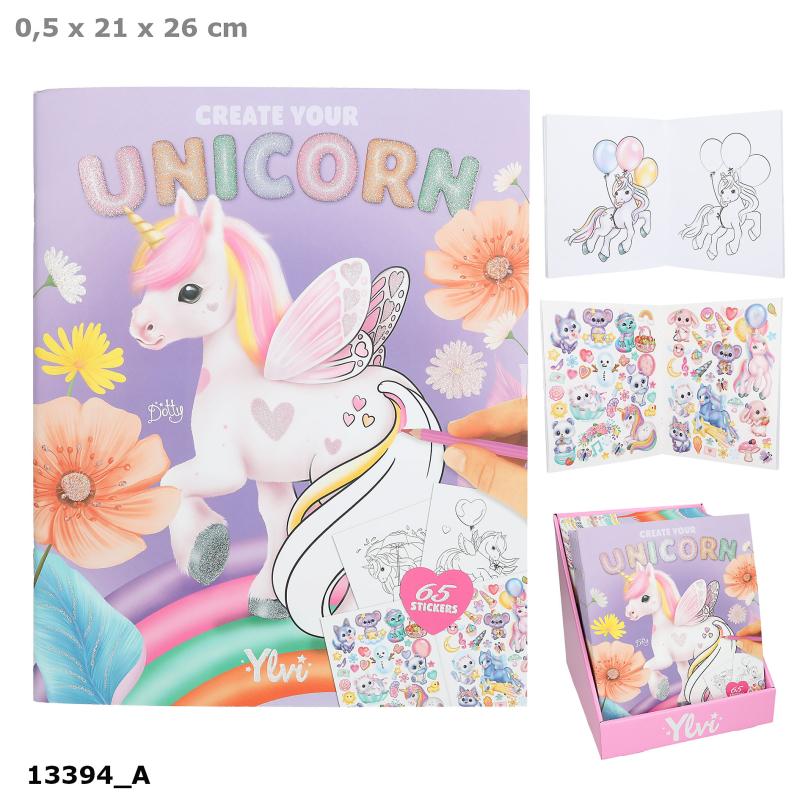 Supersød malebog fra Ylvi med masser af enhjørninger og andre nuttede fabeldyr. Bogen indeholder 24 sider med eventyrlige motiver til at farvelægger samt 65 flotte stickers til at gøre tegningerne endnu finere.